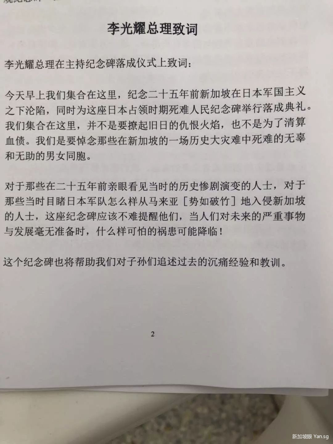 纪念活动举办地——美芝路日本占领时期死难人民纪念碑落成时,前总理李光耀也曾特别致词。