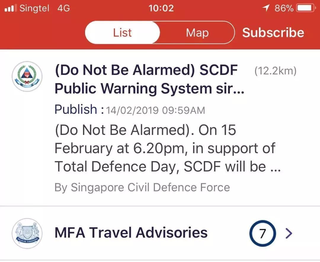 新加坡民防部队也po了视频,对警报声形式进行讲解。