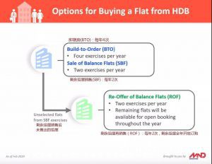 新加坡每年有约2万户人家通过即期房(Build to Order)和剩余组屋销售(Sale of Balance Flats)的程序购买组屋。即期房每年进行4次销售,销售期后剩下的组屋单位会再通过剩余组屋销售环节供应给大众,每年供应2次。