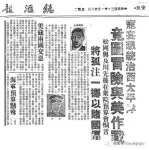 1941年,日本发动太平洋战争意图已经相当明显。1941年1月26日是除夕,1月28日新加坡《总汇报》的头条是:“(日)寇妄想统治西太平洋 竟冒险与美作战”。
