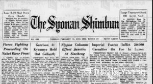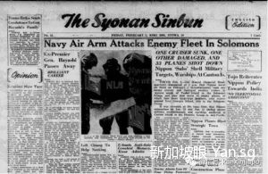 新加坡已在日军统治之下。原本的中文报章全部已经停刊,日本人在新加坡办起了英文报纸《昭南新闻》。1943年除夕是2月4日。大年初一,2月5日,《昭南新闻》头版是日军在所罗门群岛击沉敌、击伤敌巡洋舰各一艘,并击落敌机33架的新闻: