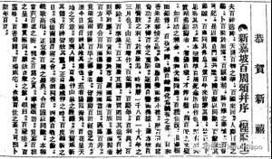 当年1月31日是除夕,2月1日是大年初一。《叻报》1月26日至2月4日休息,暂停发刊,2月5日恢复。当天的主要新闻就是“新嘉坡百周颂并序”。“百周”就是开埠100周年。当年仍是英国殖民地,所以,尽管《叻报》效忠对象是清朝,但也在相当于头版头条位置刊登了“百周颂”。