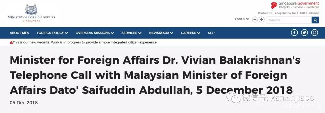 昨天(12月5日),新加坡外交部长维文医生也与马来西亚外长赛富丁通了电话。他指出马来西亚扩大柔佛港口的海域,已超越了他们1979年在地图上所划的领海范围。