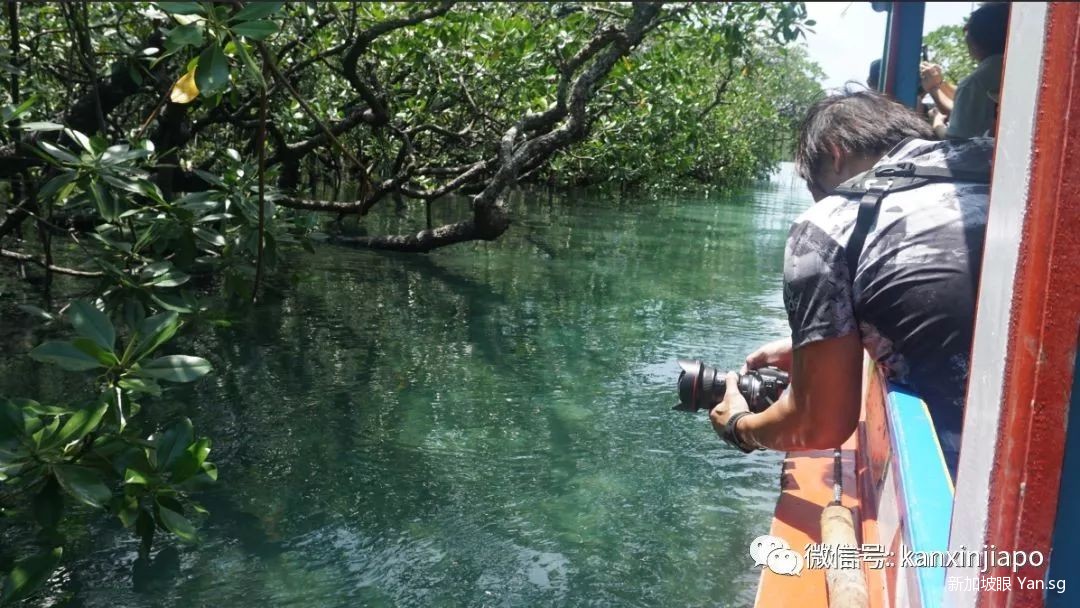 然后穿过一片红树林,这是一种在热带、亚热带海水中生长的木本植物。