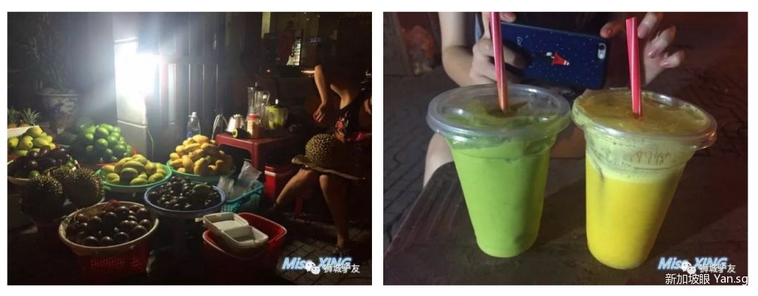 这小水果摊不看不知道,一看吓一跳啊!怎么说呢,榴莲我没吃,但是果汁巨好喝!这家水果店连个招牌都没,夫妻俩的店,门口摆了一堆水果,在indochine酒店旁边,白天不开,晚上开。