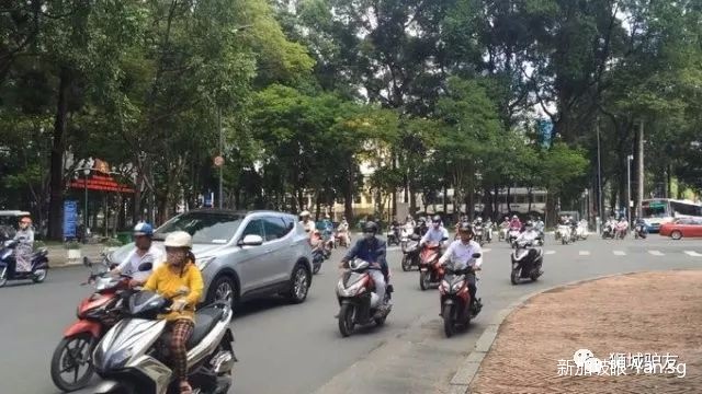我们看到机场对面有百盛(Parkson) 于是决定去觅食,路上我们从胡志明国内航站口走去初步体验了一下胡志明的风貌:总结起来就是,摩托车成群,路上的车成墙,行人则成懵逼!!!完全不懂怎么过马路!!!我们穿过一个超级大的摩托车停车场,来到一条大马路,当时晚上,太懵逼,连照片都没拍,但马路上的车大概是这个样子,你们感受下: