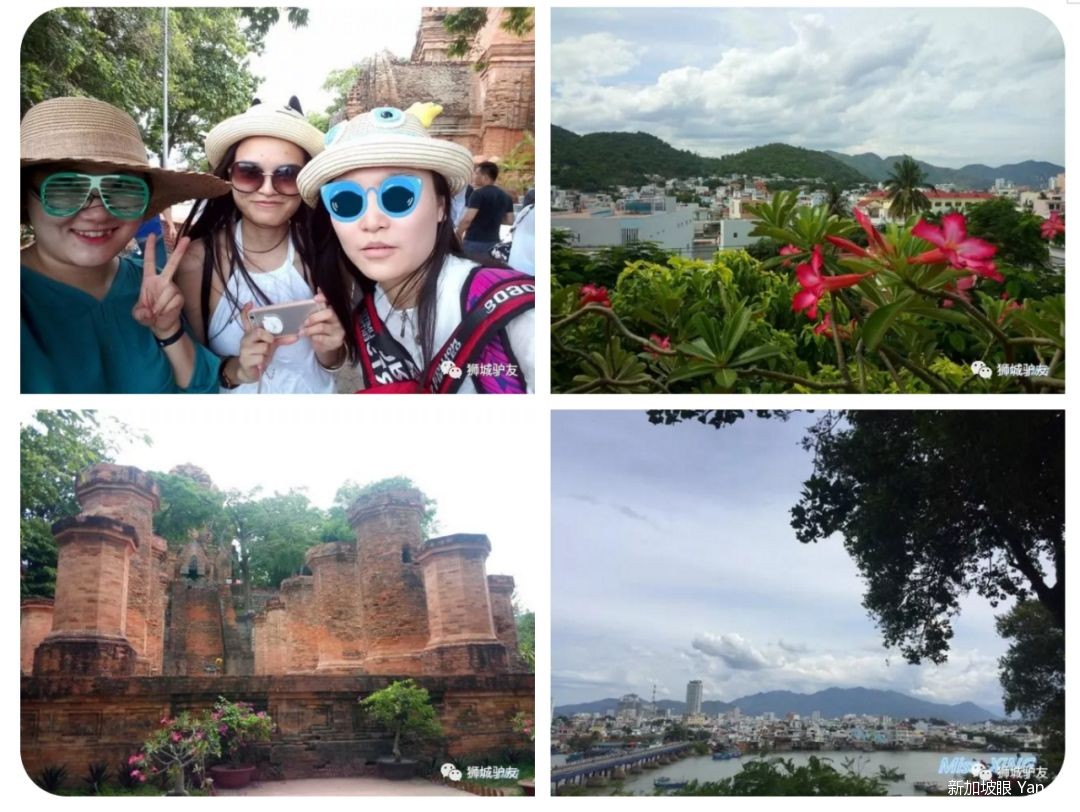 其实占婆塔的风格很像吴哥,但是真真不能跟吴哥比,不过占婆塔地势比较高,可是在上面俯视一下芽庄的风景,东南亚的三角梅处处是,在此处也是一道风景;还有天上的云彩,实在是赞,我们取得这几天,天气都异常好,可谓雨过之后晴空万里。
