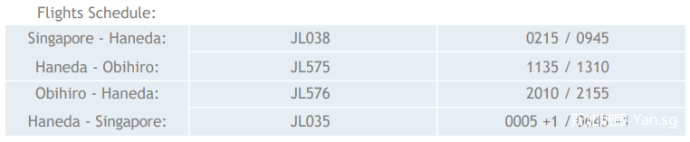 ~ JAPAN AIRLINES 新加坡-北海道往返航班经济舱