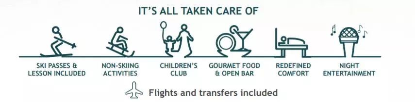 除了滑雪以外, Club Med 还提供一系列陆上运动:骑马、空中飞人、健行与健走项目等等。适合所有程度、年龄与喜好的大家选择哦。