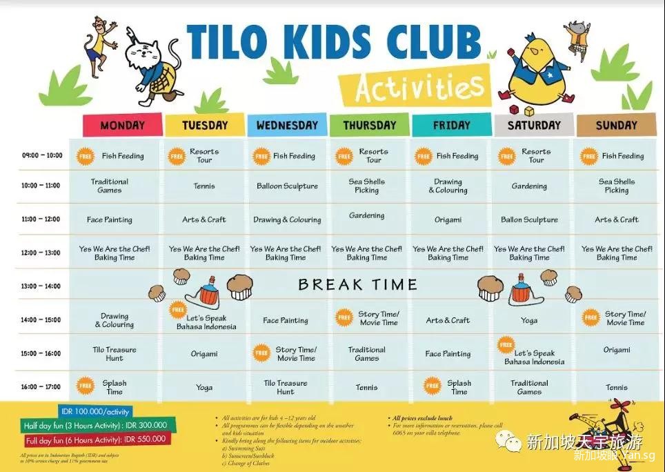 孩子们有TILO KIDS CLUB,看看这满满的安排,绝对可以把孩子们扔到俱乐部,然后大人们安心的自己找乐子拉~