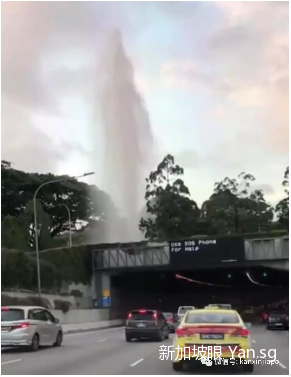 不过这样的“壮观”景象,并没有维持多久~新加坡公用事业局接到通知后,立刻派人来修复,并且在中午完成了修补工作。