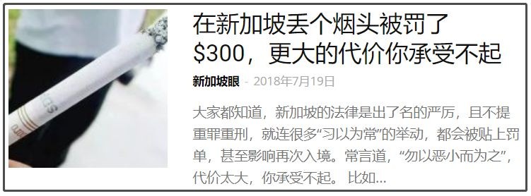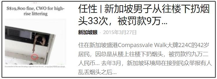 新加坡对于乱丢垃圾本身就是非常严格的,不仅会被罚款,还需要劳改。我们之前就发表过文章,让大家见识见识丢烟头会有什么后果…….