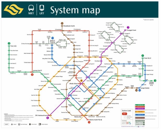 新加坡公共交通还挺发达的,主要是地铁和公交。地铁有5条已经通车运行的线路:南北线(红线)、东西线(绿线)、东北线(紫线)、环线(黄线)、滨海市区线(蓝线)。地铁线沟通南北,贯穿东西,基本上覆盖了新加坡各个区域。地铁的首班车大都在05:30前后,末班车在24:00前后。如果你的交通卡里的余额少于3新币时,就不能进地铁站了,只能去地铁站购票机器那边充值才可以进站乘坐地铁。