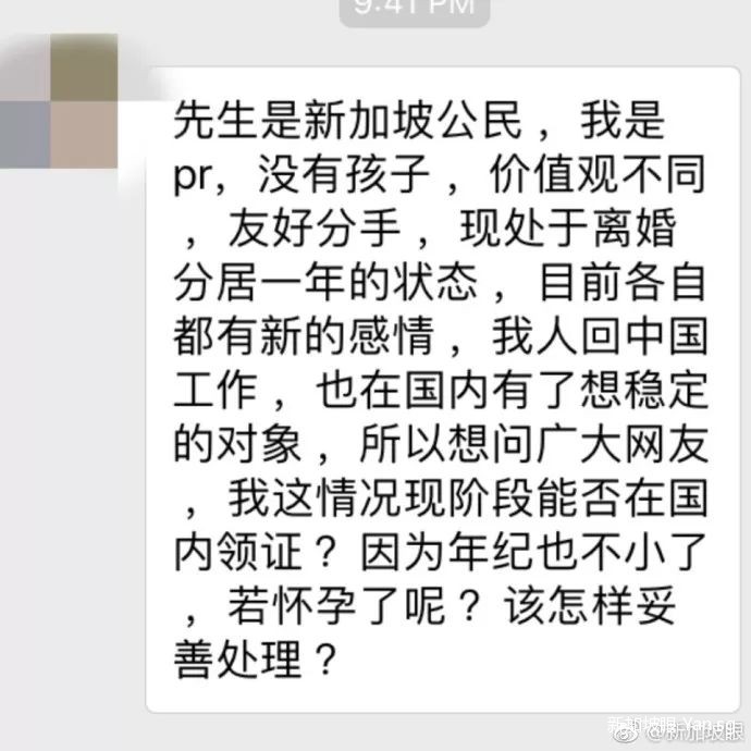 有网友发来私信问,她身为新加坡pr,跟新加坡老公离婚分居后,可以在中国结婚吗?