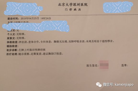 ▲(4月到中国体检报告显示有陈旧的肺结核)