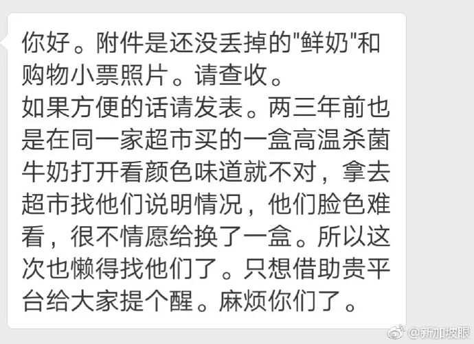 在新加坡超市买的牛奶,保质期内发臭怎么办?