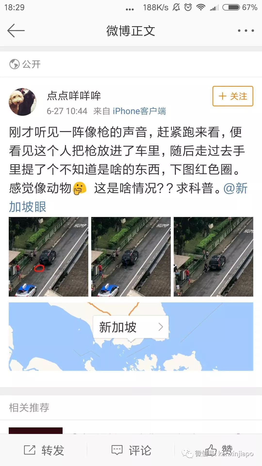在新加坡,是禁止公民私人持有枪支的。因此该名男子应该是属于合执法人员,这点从他的穿着和配车也可以看出。