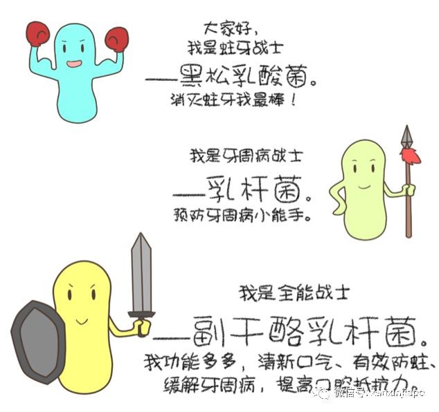 我们的口腔里会残留很多坏的细菌,这些细菌遇上“酸”,就会腐蚀牙齿,形成蛀牙,益生菌就是来抑制这些坏的细菌,从而抑制蛀牙。