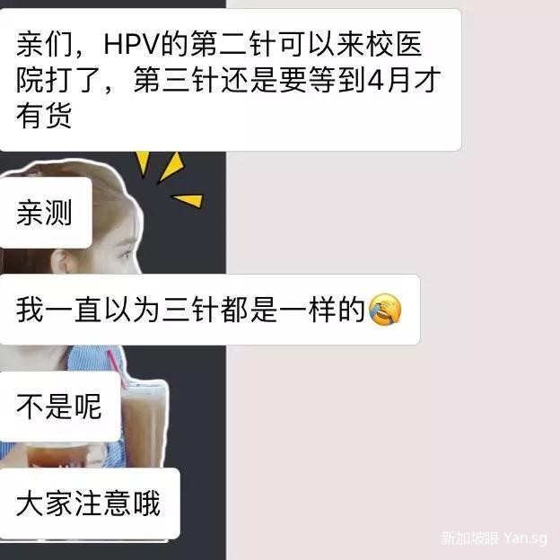 微信群中疯狂流传着校医院拒绝给学生接种HPV的N种理由,比如“只有第二针有货,第一、第三针还不能打”、“前两针没在新加坡打的,第三针也不能打”。