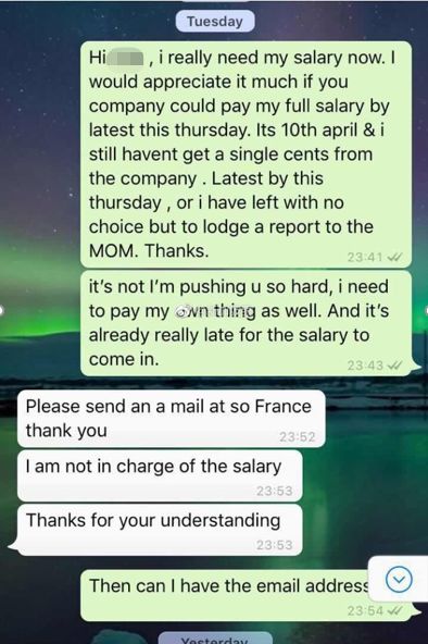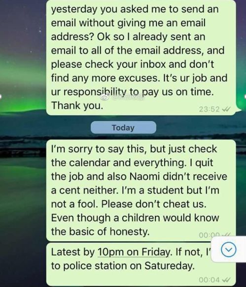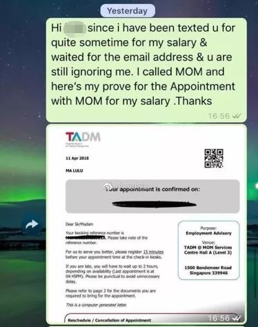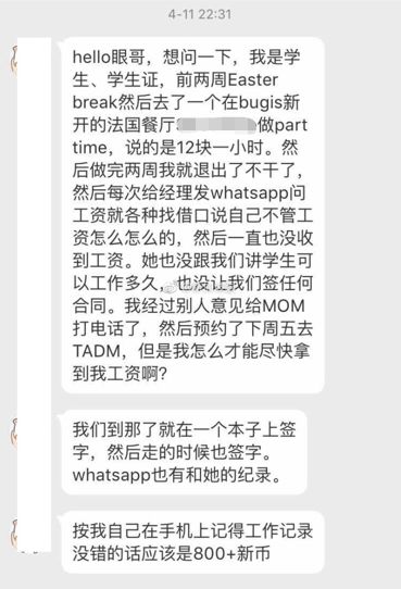 新加坡眼收到网友求助,反映做兼职工却没得到工钱的问题: