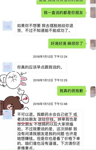 我之前在闲置群里加了一个女孩子,她说她是日本代购,我就打了全款给她让她帮我代购几支眼药水。后来发现价格比其他代购贵了一倍多,我就尝试问下能不能不要了。她说眼药水她买了,但是没关系她可以卖给别人,然后把钱还给我。