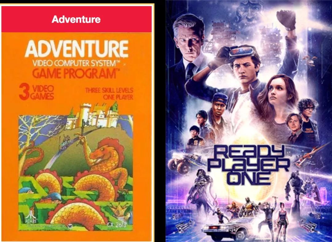 影片出现的游戏和动漫电影角色,还有第三关中致敬第一款动作冒险游戏《冒险》,这些都是《头号玩家》送给游戏玩家们的浪漫情书。