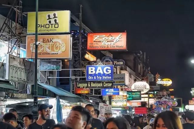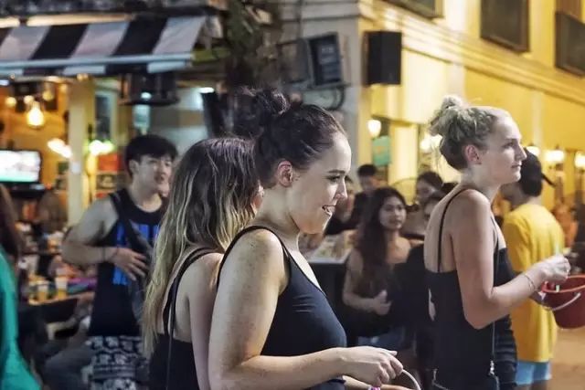 晚上我们去了有名的考山路是有两条街一天是夜店街一条是小吃街我们只去了夜店街,那是我第一次进夜店也是第一次抽烟那边的老外比较多他们都很快进入玩的状态