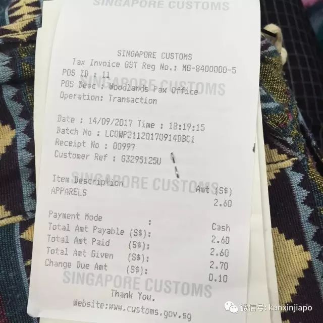 我从新山买了3件衣服,居然被新加坡海关“税”了