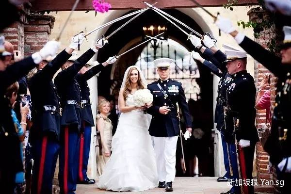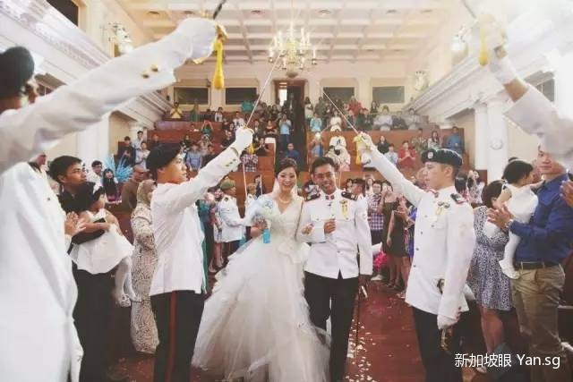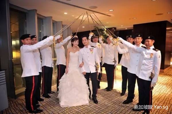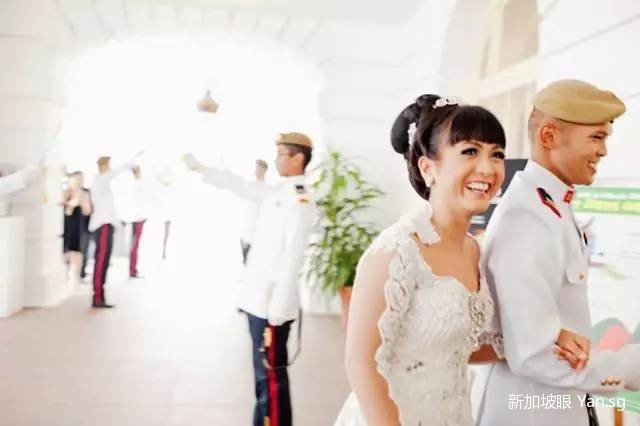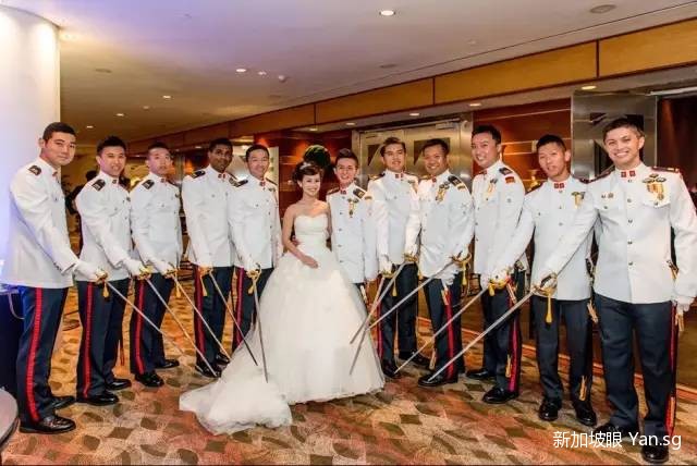 这就是新加坡别具特色的军事风格婚礼了,非常难得!