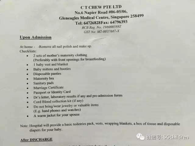 我生小北的时候,是在鹰阁(Gleneagles)医院,我的医生给了我一个待产清单,现在也跟大家分享出来: