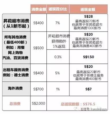 以上参考样例是按照每月消费账单高于S$400,以及在同个账单除了昇菘超市以外的消费高于S$400,就可以在昇菘超市消费获得12%^现金回扣。