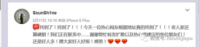 不久之后,这位网友发现,竟然真的找到了老人,恭喜恭喜!