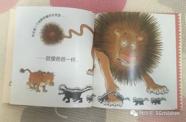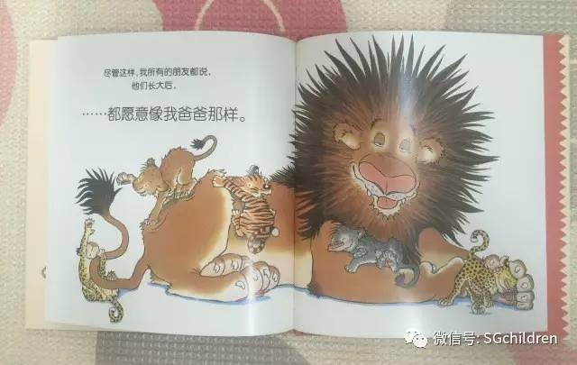 第四本是英国作家大卫·梅林绘制的《像爸爸一样》,同样是《像妈妈一样》的姊妹篇。“一个好爸爸胜过一百个好老师。”书中从小狮子的视角出发,给我们描绘了他眼中的爸爸,酷炫、风趣、幽默又有童真,更重要的是小狮子想要以爸爸为榜样,快快地长大,做跟爸爸一样的事情。可见,爸爸在他心目中的地位有多重要!