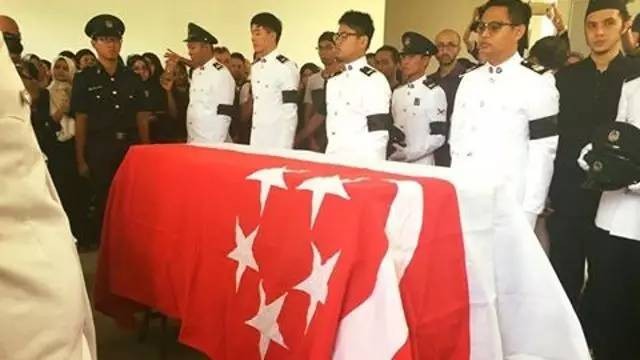 因为是因公殉职,他的棺木被盖上新加坡国旗下葬。
