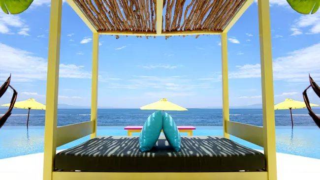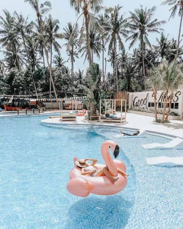 游玩累了,就还可以在火烈鸟俱乐部的无边泳池内玩水嬉戏。