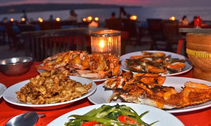 在金巴兰海滩,一边欣赏巴厘岛最美日落,一边品尝海鲜餐