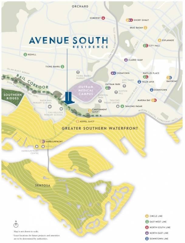 南峰雅苑(Avenue South Residence)位于南部濒水地区的门口,是RCR区中最靠近市区的地段,又位于铁道走廊旁边。同时,这栋公寓也将成为附近的新地标。这样,这栋公寓将享有至少4个光环。其“光环效应”(Halo Effect)将是倍增的,因而其升值潜能是不言而喻的。