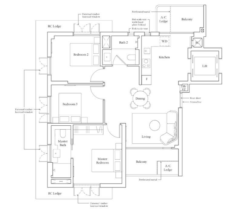 南峰雅苑(Avenue South Residence)三卧室户型图