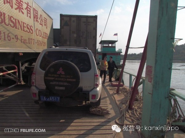 必须先敲章后座渡船到泰国,边检敲章在会赛镇中间,开车过去是单行道(one way)逆行要罚款的(去年从泰国回来,不知道是单行道,罚款老币20万)。办完人的没有想起要办车的出关,急急忙忙到车码头座渡船,到车码头才知道要等4、5辆车一起过,交渡船费(人民币360),就等吧!无事照几张照片。看到有边检的一个office,想起要办车出关,上去问说交老币9万,没有想太多就交了,可是也没有敲章,自己认为没事,等车凑齐了上船过泰国了。那知道等我到万象,才知道没有出境章不让入境,不然交罚款老币30万。