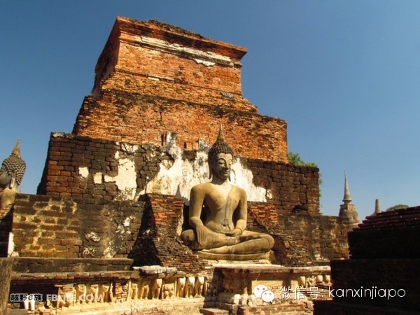 在国外加油我一般到埃索(Esso)或者壳牌(Shell)的加油站。清迈(Chiang Mai)寺庙多,到了素可泰(Sukhothai)就是被毁坏的寺庙多,大多数是被缅甸人烧毁的。烧毁到现在都有200-300年历史了。选择有名的Wat Si Chum的大佛和历史公园的Wat Mahathat。