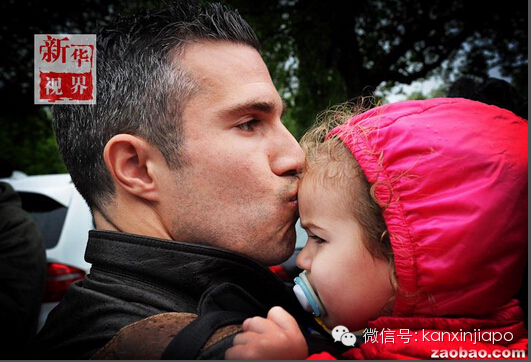 2012年6月4日,荷兰球员范佩西在出征欧锦赛前与女儿亲吻告别。