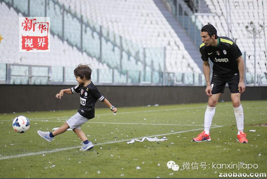 2014年5月18日,意大利门将布冯在意甲一场比赛后与儿子玩耍。