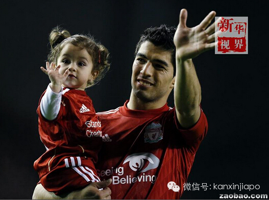2012年5月8日,乌拉圭球员苏亚雷斯在英超一场比赛后怀抱自己的女儿德尔菲娜。