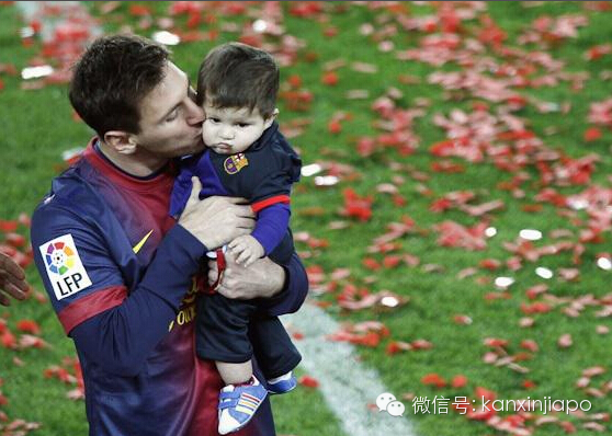 2013年5月19日,阿根廷球员梅西抱着儿子蒂亚戈出席本赛季西甲冠军颁奖仪式。