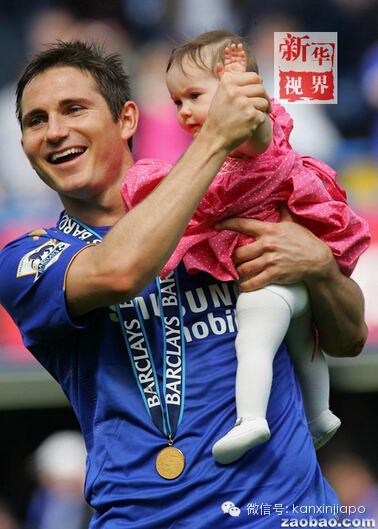 2006年4月29日,英格兰球员兰帕德在切尔西队获得本赛季英超联赛冠军后与女儿卢娜共同向观众致意。