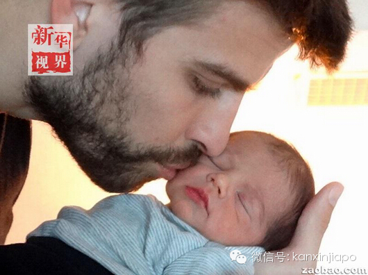 2013年初,西班牙球员皮克亲吻他与拉丁天后夏奇拉的儿子米兰。