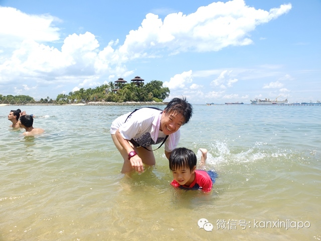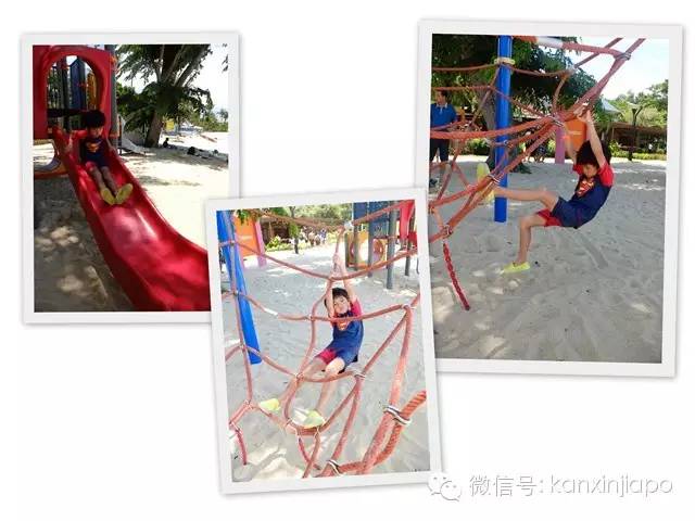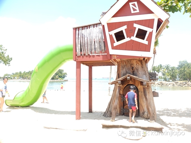 圣淘沙有两个沙滩, 一个是siloso beach, 另一个是palawan beach. 后者比较浅水, 而且沙滩有游乐设施, 比较适合小朋友玩