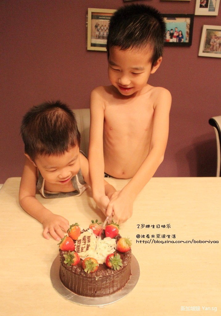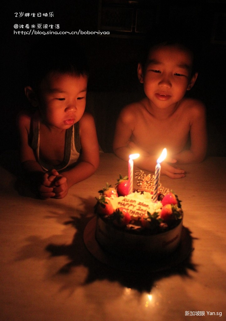 晚上回到家买了一个蛋糕,全家人一起为小胖唱了生日歌,他虽然不明白这是什么意思,不过也开心的不得了,想想两年前生他的日子;两年来照顾他的日子,很辛苦,也很感恩,能拥有这样一对可爱的兄弟,和幸福的一家人。