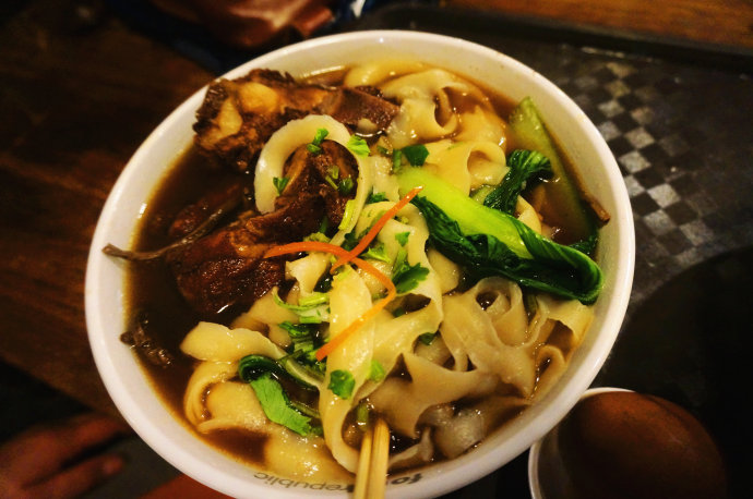 ↓返回大食代的时候都快9点了,大概是长时间没有这么耗体力的运动过了,腰和腿疼到不行,凑合要了碗山西刀削面解决了晚餐。是的,山西刀削面。。。千里迢迢跑到赤道边吃了碗山西刀削面……