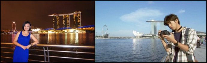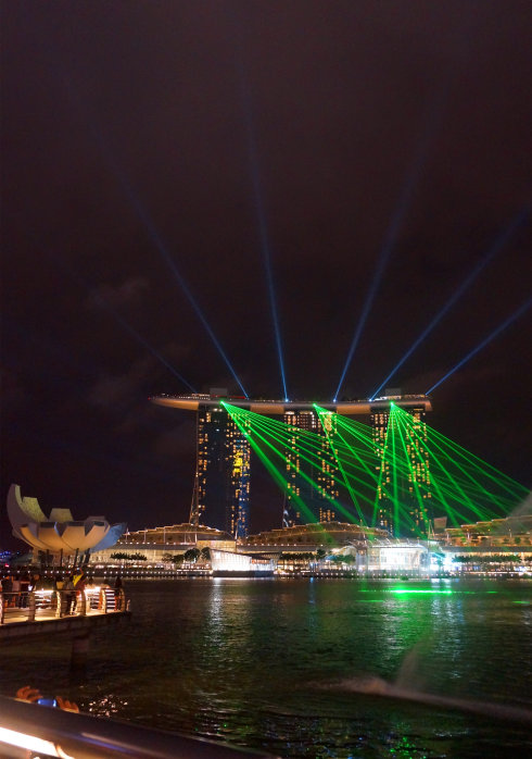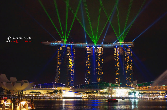 ↑滨海湾,身后的金沙酒店,艺术博物馆,摩天轮。